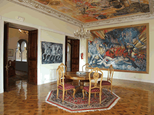 The hotel also has several communal rooms, such as living rooms, the glass-roofed courtyard and two exhibition rooms with paintings and fresco paintings of Antonio Otazzo, among others. “Katarsis”, a 200 m2 fresco painting is one of his works that you can find here.